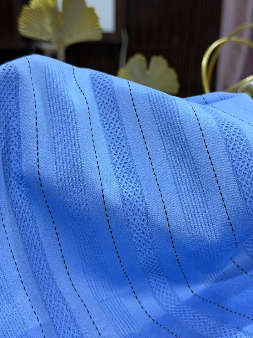 Meet Angle Star Swiss, a premium Swiss-style cotton fabric crafted for men who value quiet luxury and year-round comfort. Woven on fine looms, the fabric features alternating satin stripes, breathable textures and clean pin-stitch detailing that catch the light without shouting. The handle is smooth and cool against the skin, with a fluid drape that tailors beautifully into kaftans, agbadas, smart casual shirts or statement natives for weddings and high-profile occasions.