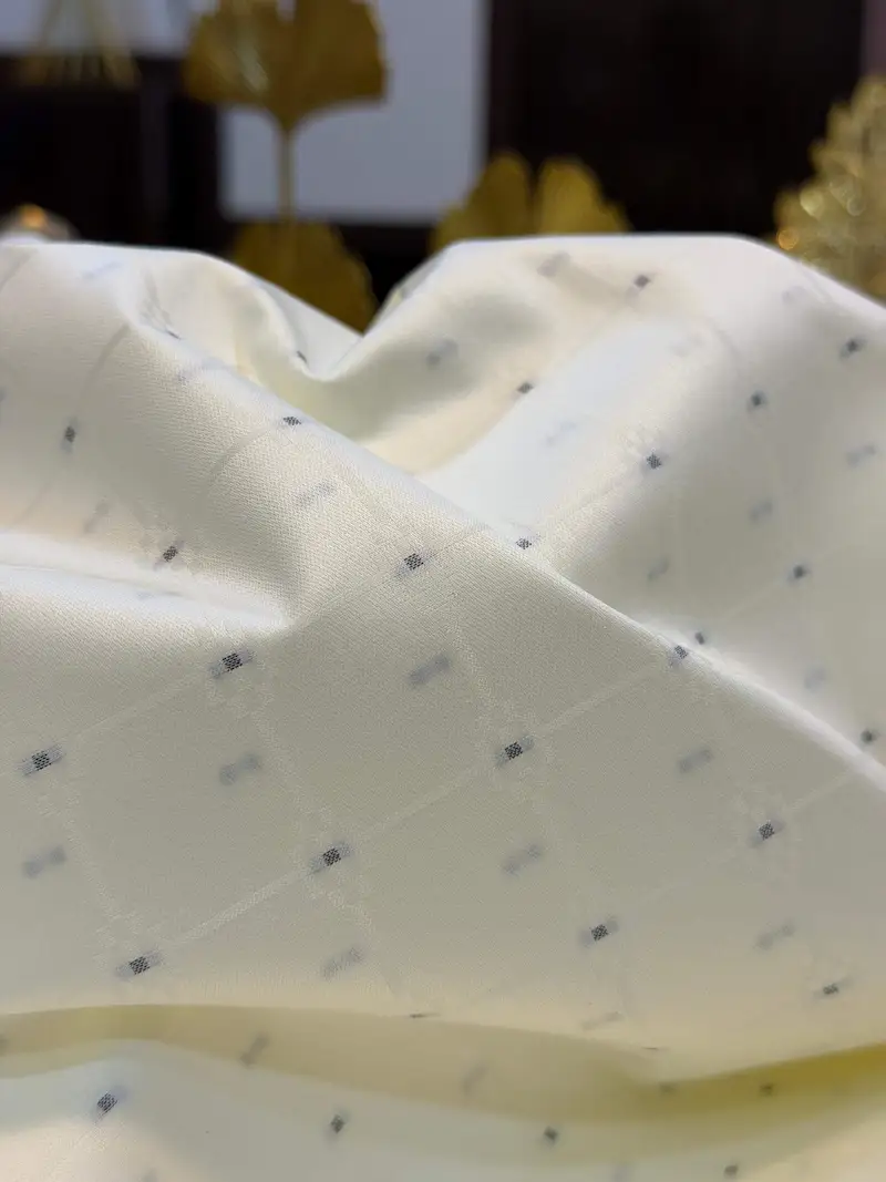 Candy Cotton is a breathable, smooth-handle cotton with a subtle windowpane weave and tiny contrast motifs for a refined, modern look. It drapes neatly and presses crisply, making it a smart choice for kaftan/senator styles and clean casual outfits. The fabric feels cool against the skin, so it suits Nigeria’s warm climate and everyday wear. Visible width: 36 by 60 inches. Sold as continuous yardage (per your store settings). Tailors will appreciate the predictable handle and tidy edges along seams and embroidery.