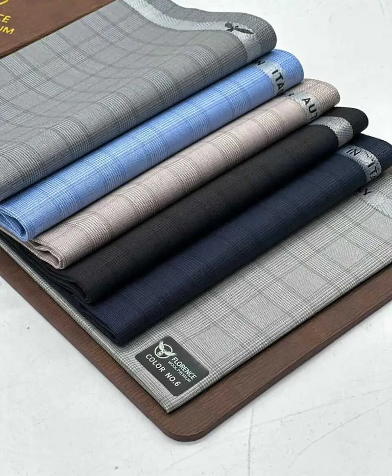 Texas Wool is a premium Italian-made suiting fabric finished with a refined glen-check pattern. The weave is tightly balanced to give a cool handle for warm climates while keeping the crisp structure tailors love. It drapes cleanly, presses sharply and recovers well after long days, making it a dependable choice for suits, blazers, trousers, waistcoats or polished senator styles. Available in executive colours—Charcoal Grey, Light Blue, Soft Beige, Navy Charcoal and Ash Grey—each tone reads sophisticated without shouting, so your outfit looks modern and timeless in every setting.
