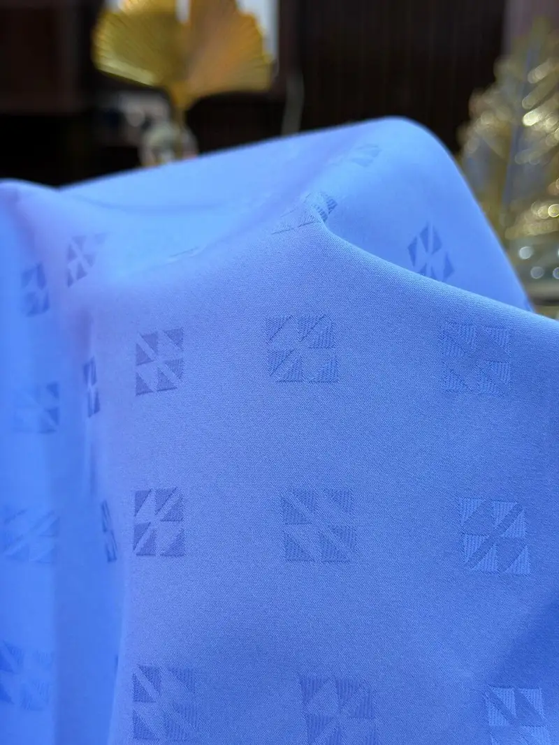 The yarn selection gives this voile a crisp structure while staying lightweight and breathable—perfect for Nigeria’s climate. Each colourway is carefully dyed for depth: Arctic White and Ivory for pristine ceremonial looks; navy blue and lime green for boardroom authority; skty Blue for daytime elegance; light cream chocolate Brown for rich, refined tones. The result is a cloth that looks expensive, holds its shape after tailoring and launders cleanly without losing lustre.